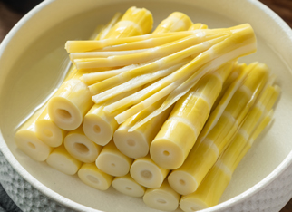 小竹筍制成菊花筍,涮火鍋、湯鍋,味尤佳。